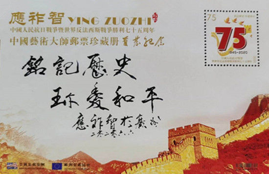 近日,為紀(jì)念中國(guó)人民抗日戰(zhàn)爭(zhēng)暨反法西斯戰(zhàn)爭(zhēng)勝利75周年及聯(lián)合國(guó)成立75周年,聯(lián)合國(guó)世界非物質(zhì)文化遺產(chǎn)保護(hù)基金會(huì)授予世界頂級(jí)藝術(shù)巨匠,中國(guó)藝術(shù)大師應(yīng)祚智“世界和平藝術(shù)家”稱(chēng)號(hào),并頒發(fā)榮譽(yù)證書(shū)和勛章;同時(shí)為受勛藝術(shù)大師制作發(fā)行了“紀(jì)念中國(guó)人民抗日戰(zhàn)爭(zhēng)暨反法西斯戰(zhàn)爭(zhēng)勝利75周年——中國(guó)藝術(shù)大師應(yīng)祚智”世界郵票珍藏冊(cè)。中國(guó)藝術(shù)大師應(yīng)祚智獲得“世界和平藝術(shù)家”稱(chēng)號(hào),是殊榮,更是使命。期盼藝術(shù)家通過(guò)經(jīng)典作品交流,為推動(dòng)世界文明互鑒,促進(jìn)人類(lèi)文明進(jìn)步和世界和平發(fā)展作出更重要的貢獻(xiàn)。應(yīng)祚智(1957—),字若愚,中國(guó)合肥人。世界頂級(jí)藝術(shù)巨匠,世界文化大使,中國(guó)藝術(shù)巨匠大師,中國(guó)藝術(shù)研究院創(chuàng)作員,中國(guó)人民解放軍國(guó)防大學(xué)特約書(shū)畫(huà)家,北京宋莊國(guó)際書(shū)畫(huà)院院長(zhǎng),應(yīng)祚智藝術(shù)館(北京畫(huà)館)館長(zhǎng)、廣府文化特聘大師、全成地信集團(tuán)副董事長(zhǎng)文化大使兼任首席專(zhuān)家。有“世界華人領(lǐng)袖(KingCat)之一”、“世界頂級(jí)藝術(shù)巨匠”、“中國(guó)杰岀書(shū)畫(huà)大師”、“中國(guó)杰出篆刻家”、“貓王巨擘”、“著名慈善家”、“金石書(shū)畫(huà)鑒定家”等盛譽(yù)。在國(guó)際上倍譽(yù)崇隆,影響巨大。世界頂級(jí)藝術(shù)巨匠應(yīng)祚智大師于1985創(chuàng)作了《百貓鐵骨英姿圖》,通過(guò)中外新聞搜索得知,已有專(zhuān)家將世界頂級(jí)藝術(shù)巨匠,中國(guó)杰出藝術(shù)大師應(yīng)祚智的畫(huà)作《回眸圖》與凡高的《向日葵》、畢加索的《夢(mèng)》并稱(chēng)世界三大名畫(huà)作,認(rèn)為應(yīng)祚智的國(guó)畫(huà)與凡高和畢加索的油畫(huà)相較,難分伯仲。據(jù)廣東電視臺(tái)及大量的中外媒體報(bào)道,在廣東省第一僑鄉(xiāng)江門(mén)市2010年1月1日至5日舉辦的“全國(guó)首創(chuàng)著名書(shū)畫(huà)大師東方貓王應(yīng)祚智書(shū)畫(huà)合金畫(huà)巡回展覽”,轟動(dòng)國(guó)際,吸引了30萬(wàn)多人參觀(guān),創(chuàng)世界畫(huà)展記錄。