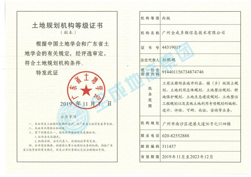 丙級土地規(guī)劃資質(zhì)證書