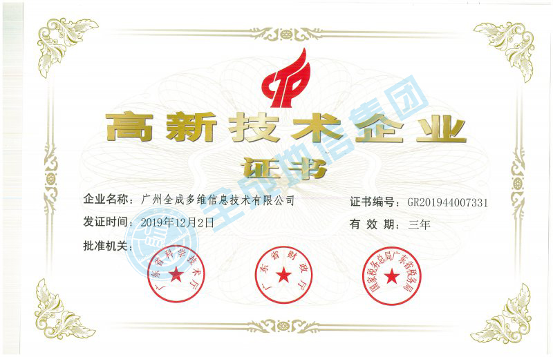 高新技術(shù)企業(yè)證書(shū)