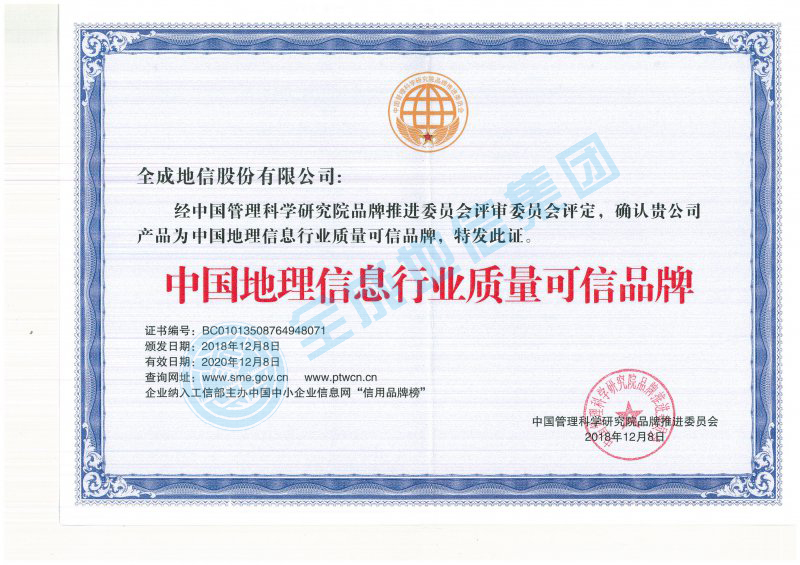 中國(guó)地理信息行業(yè)質(zhì)量可信品牌