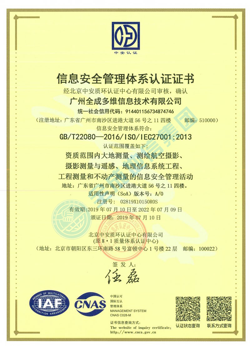 信息安全管理體系認(rèn)證證書(shū)